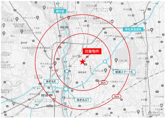 本施設は、神奈川県海老名市の海老名市役所周辺地区に位置し、物流用途に加え、建物全体の約半分がオフィス・研究施設・ラボ等のマルチユーススペースで構成された、テナント企業の柔軟な拠点創造を支援し、社会のイノベーション・付加価値の創出の場となることを目指した複合業務施設です※3。