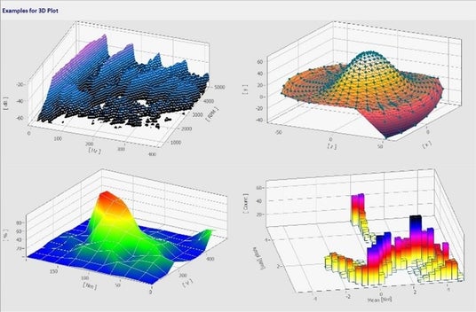 ・ 多軸グラフ、XYグラフ、3D表示、カラーマップなど多様なグラフ表示に対応・ フィルタ処理、統計処理など演算処理用の関数を400種類以上用意