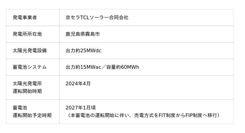 東京センチュリー株式会社(代表取締役社長:藤原 弘治、本社:東京都千代田区、以下「当社」)は、当社グループの京セラ TCL ソーラー合同会社が運営・管理する鹿児島・霧島メガソーラー発電所(以下「本発電所」、出力約25MW)において、FIT 制度から FIP 制度への移行および蓄電池を併設すること(以下「本プロジェクト」)を決定し、本年6月より本蓄電池の設置工事を開始しました。