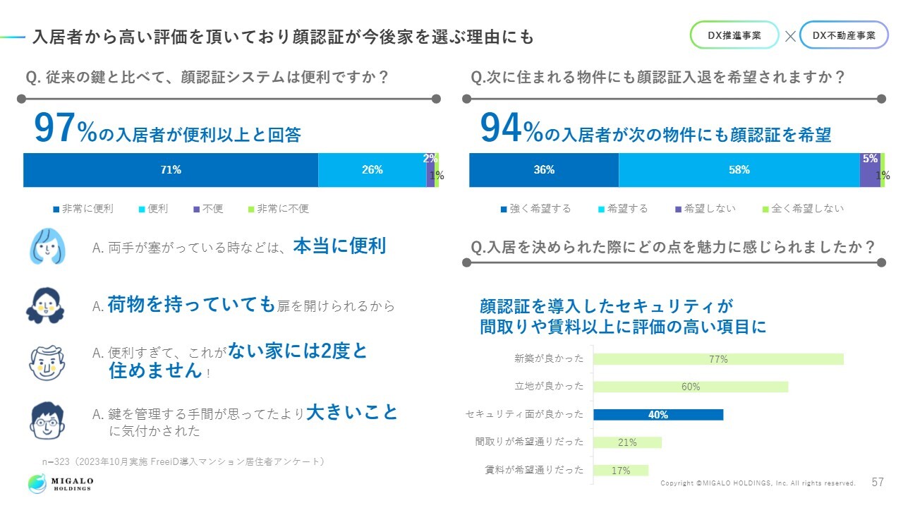 入居者から高い評価を頂いており顔認証が今後家を選ぶ理由にも