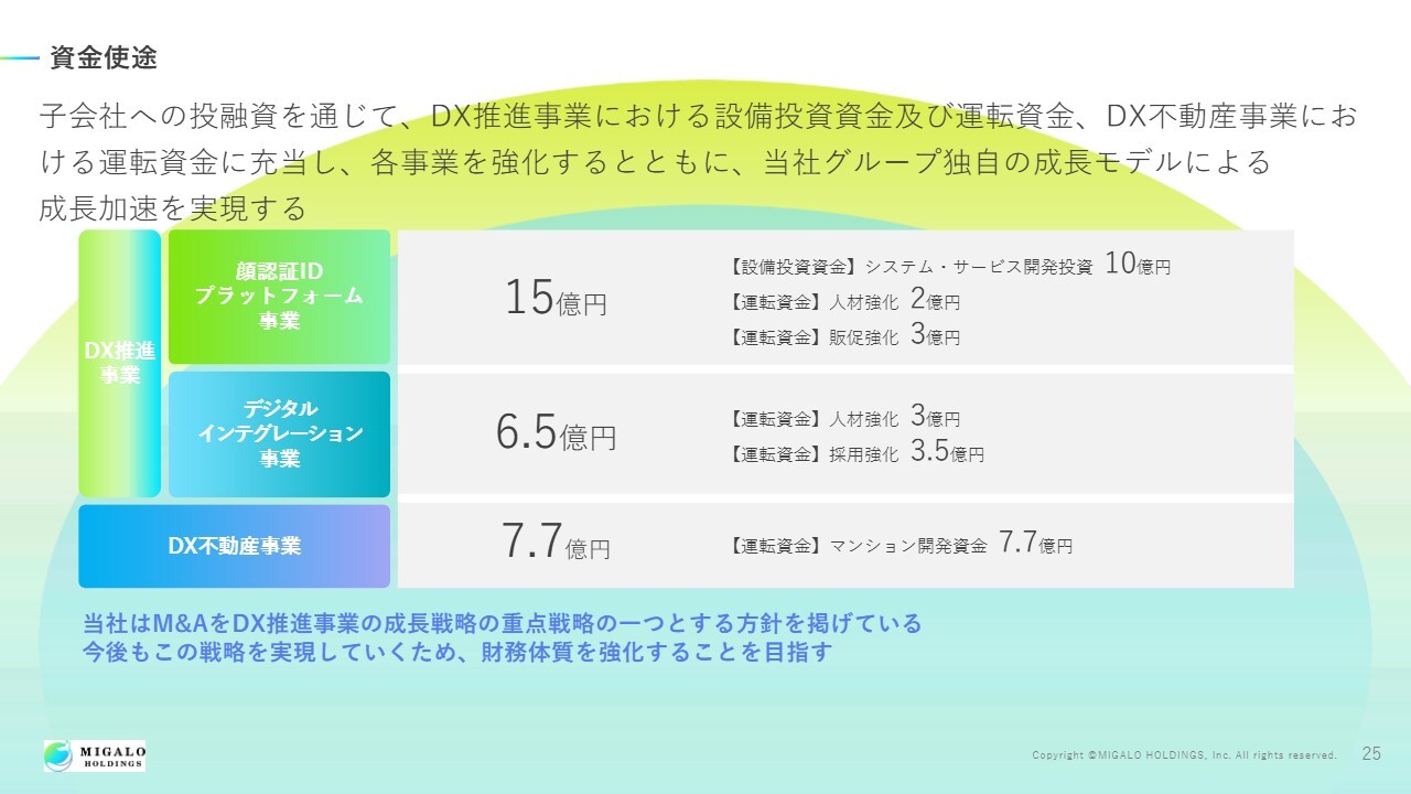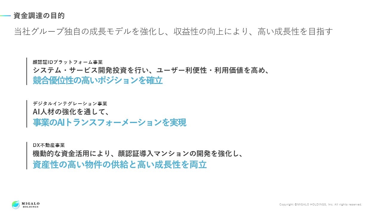 このような当社独自の成長モデルを実現し、さらに加速させる上で、今回の調達を実施したということになります。