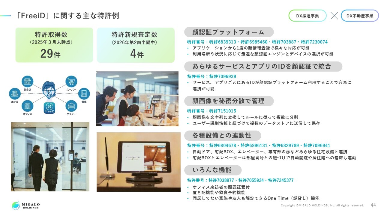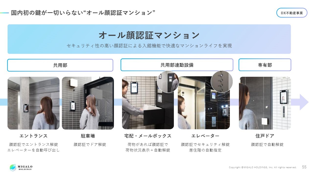 例えば、顔認証の分野では、不動産会社であるプロパティエージェント社で培ったノウハウ、またソフトウェアのアップデートや機能のアップデートについては、建物管理事業や賃貸管理事業を通じた当社のノウハウを活用し、既存の顔認証システムのさらなるアップデートを進めることで、ナレッジがいわゆるシナジーとして効いてきます。