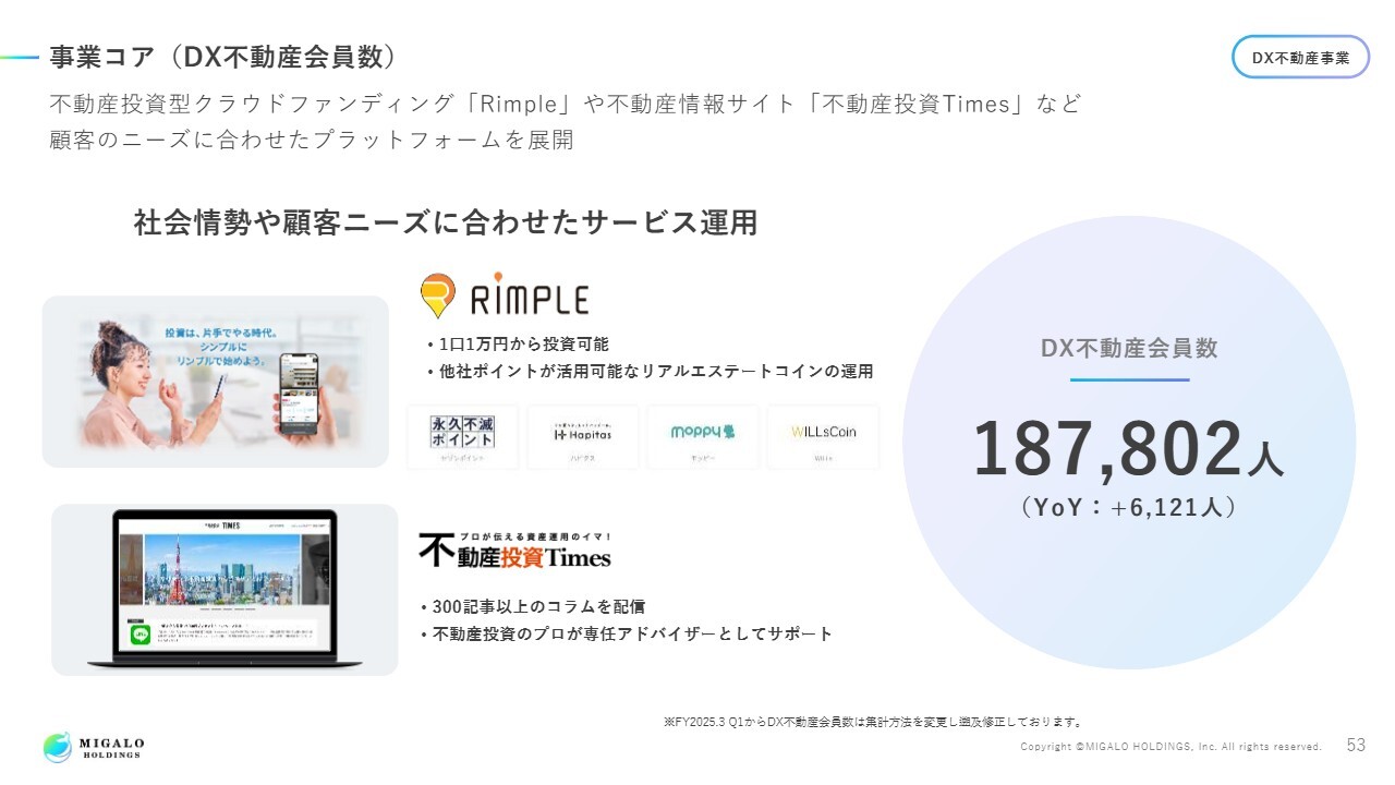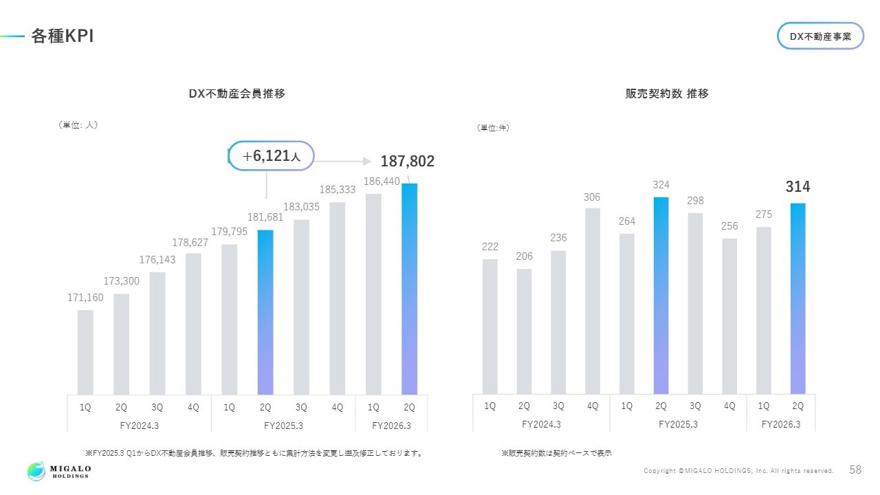 各種KPIについてですが、DX不動産会員数は順調に推移し数を伸ばしています。