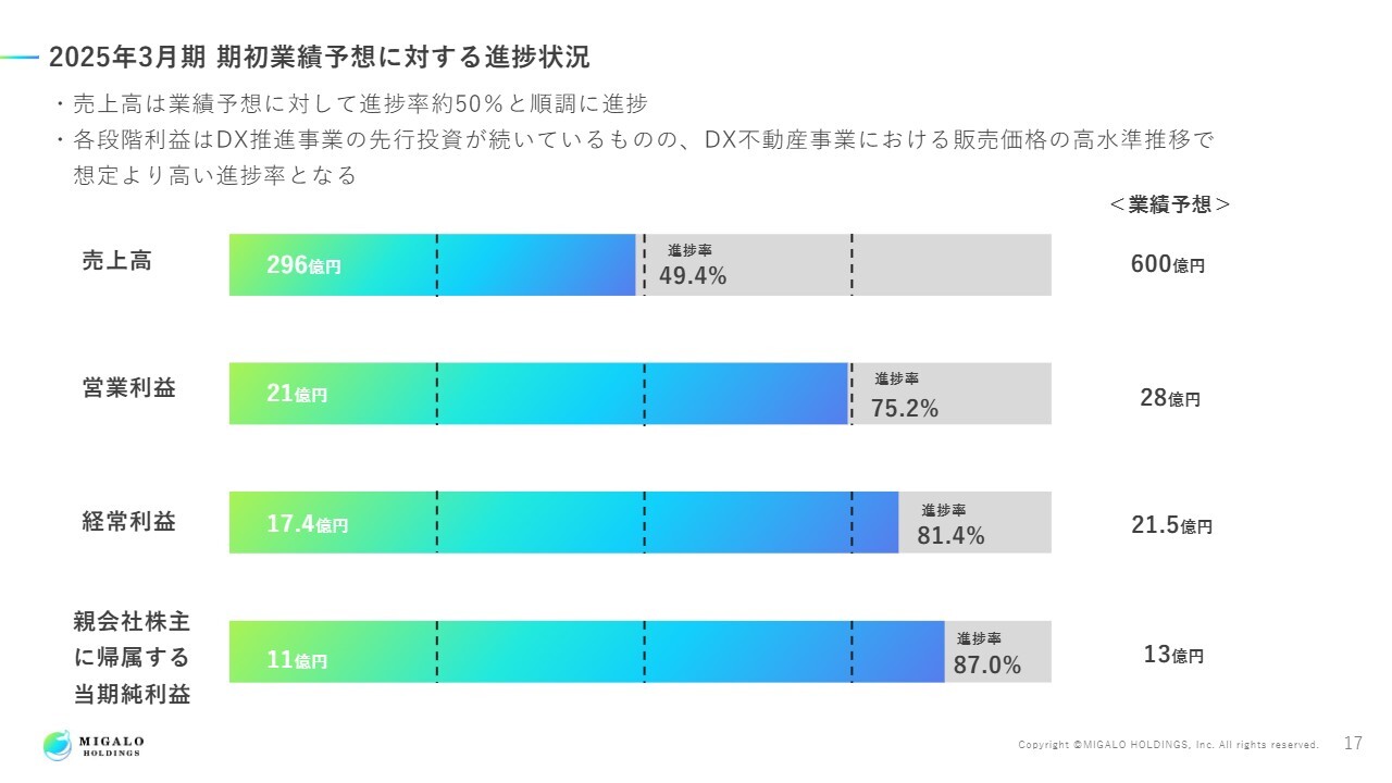 ミガロHD、不動産事業の販売価格の上昇で格段階利益が増益、通期業績予想を上方修正 期末配当を増配