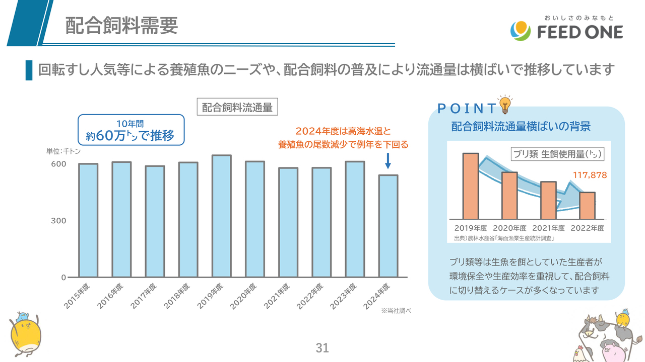 フィード・ワン、2024年度最終益53億円と過去最高 2033年度販売数量シェア20%・EBITDA160億円超を目指す