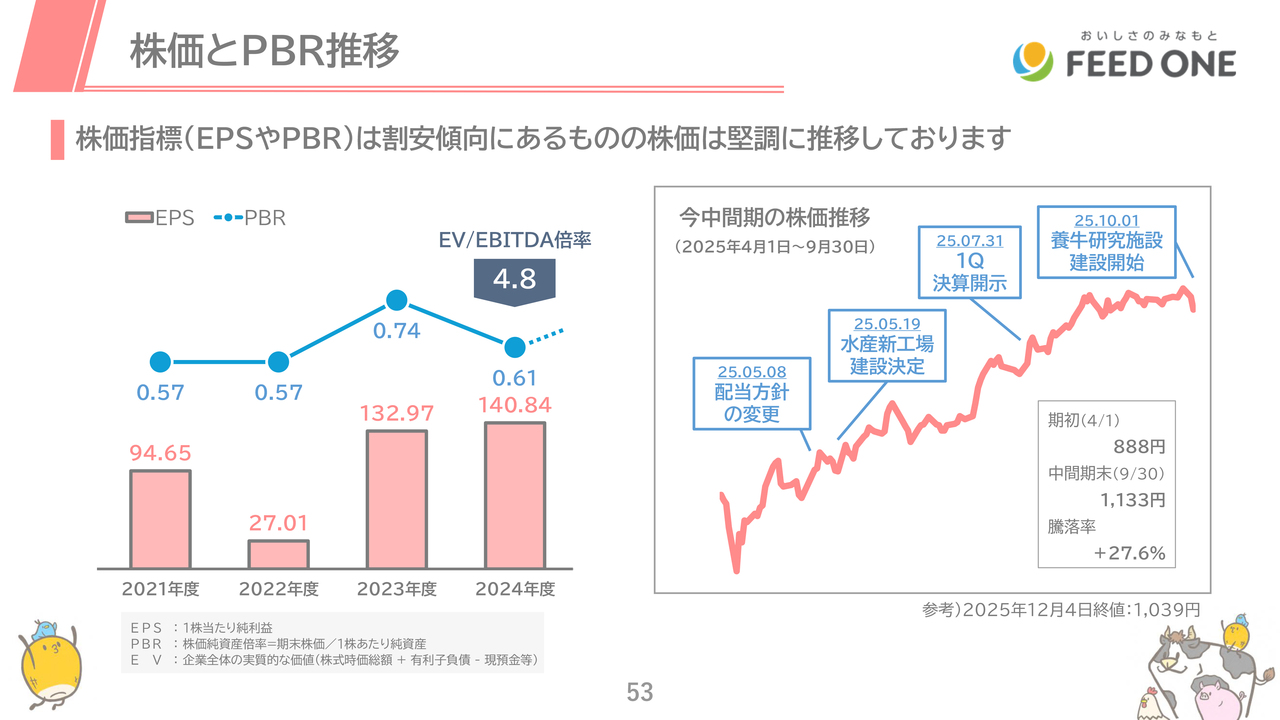 一方、PBRやEV/EBITDA倍率など各指標ではかなりの割安な値となっており、配当利回りも4パーセント以上となっています。着実に業績を積み上げ、信頼を得られるよう努力していきます。
