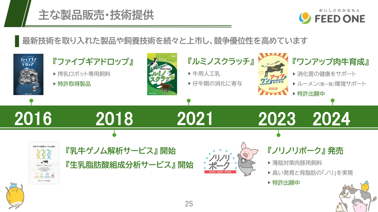さらに、アメリカの穀物メジャーであるカーギルの子会社で畜産大手のProvimi社との技術提携や畜産研究が進んでいるアメリカ中西部のカンザス州立大学とも提携し、海外の技術導入にも積極的に取り組んでいます。