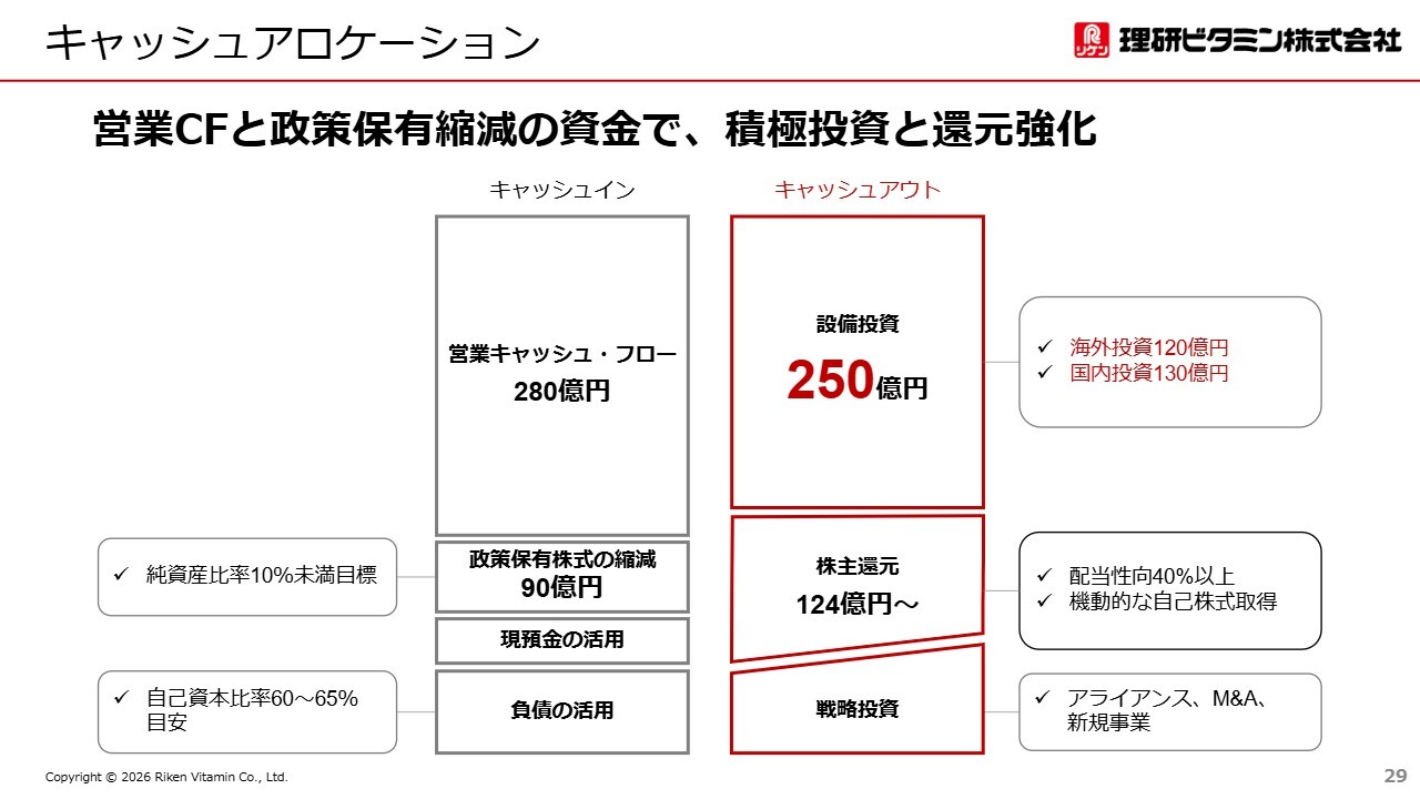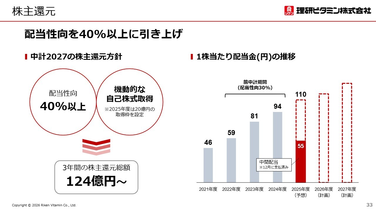 業績予想は修正しましたが、配当は据え置く方針です。当社の配当方針には「安定的」という言葉が含まれており、2021年3月期など厳しい状況の時でも減配しておらず、そのような措置はできるだけ避けたいという意思があります。今後については確定的なことはお伝えできませんが、現状ではこの方針を維持しています。