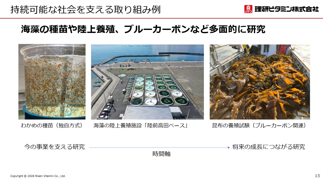このように、短期・中期・長期の3つの時間軸で海藻の研究を進めており、国内企業では当社が最も進んでいると考えています。