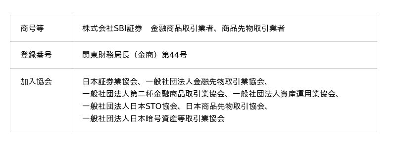 SBI証券で取り扱っている商品等へのご投資には、商品毎に所定の手数料や必要経費等をご負担いただく場合があります。また、各商品等は価格の変動等により損失が生じるおそれがあります(信用取引、先物・オプション取引、商品先物取引、外国為替保証金取引、取引所CFD(くりっく株365)、店頭CFD取引(SBI CFD)では差し入れた保証金・証拠金(元本)を上回る損失が生じるおそれがあります)。各商品等への投資に際してご負担いただく手数料等及びリスクは商品毎に異なりますので、詳細につきましては、SBI証券WEBサイトの当該商品等のページ、金融商品取引法等に係る表示又は契約締結前交付書面等をご確認ください。