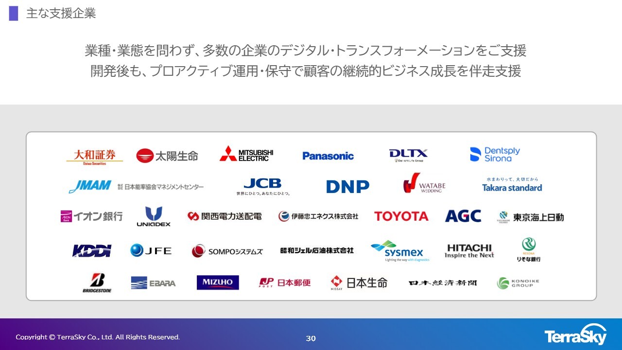 昨年度もさまざまなイベントを開催しました。このようなイベントを通じて、お客さまとマーケットに対して当社の取り組みをしっかり報告しながら、ビジネスを拡大していきたいと考えています。今年度もテラスカイのプライベートイベント「テラスカイ・デイ」を10月4日に開催する予定です。
