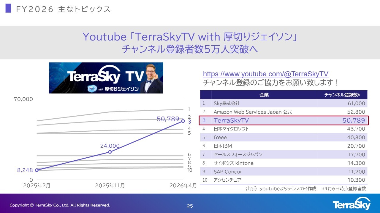 当社は「TerraSkyTV with 厚切りジェイソン」というYouTubeチャンネルを運営しています。