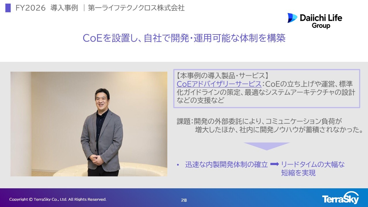 続きまして、昨年度の成果として、導入事例を少しご紹介したいと思います。1つ目は第一生命さまです。現在は第一ライフグループさまに社名が変更されました。