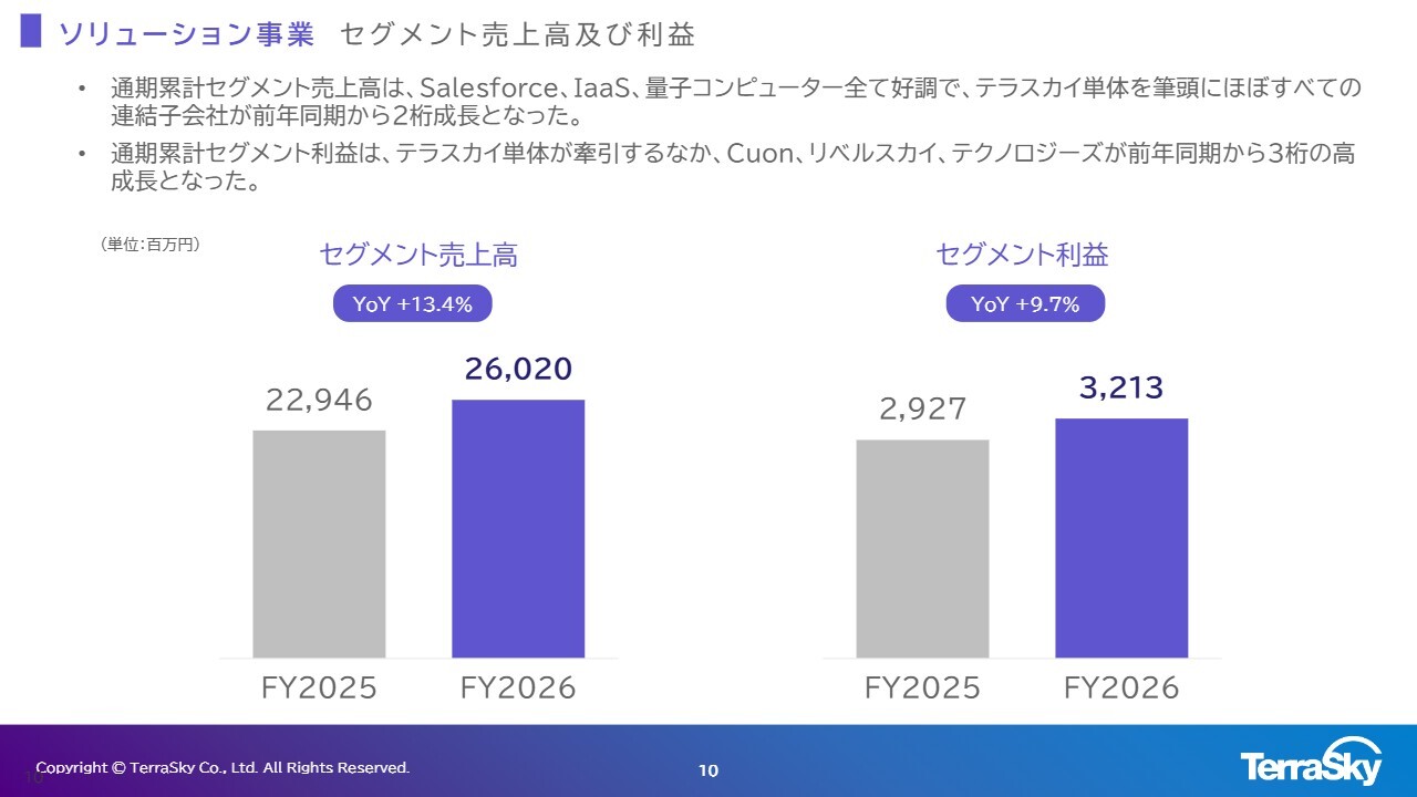 ソリューション事業についてです。売上は前年比13.4パーセントの成長を達成しました。