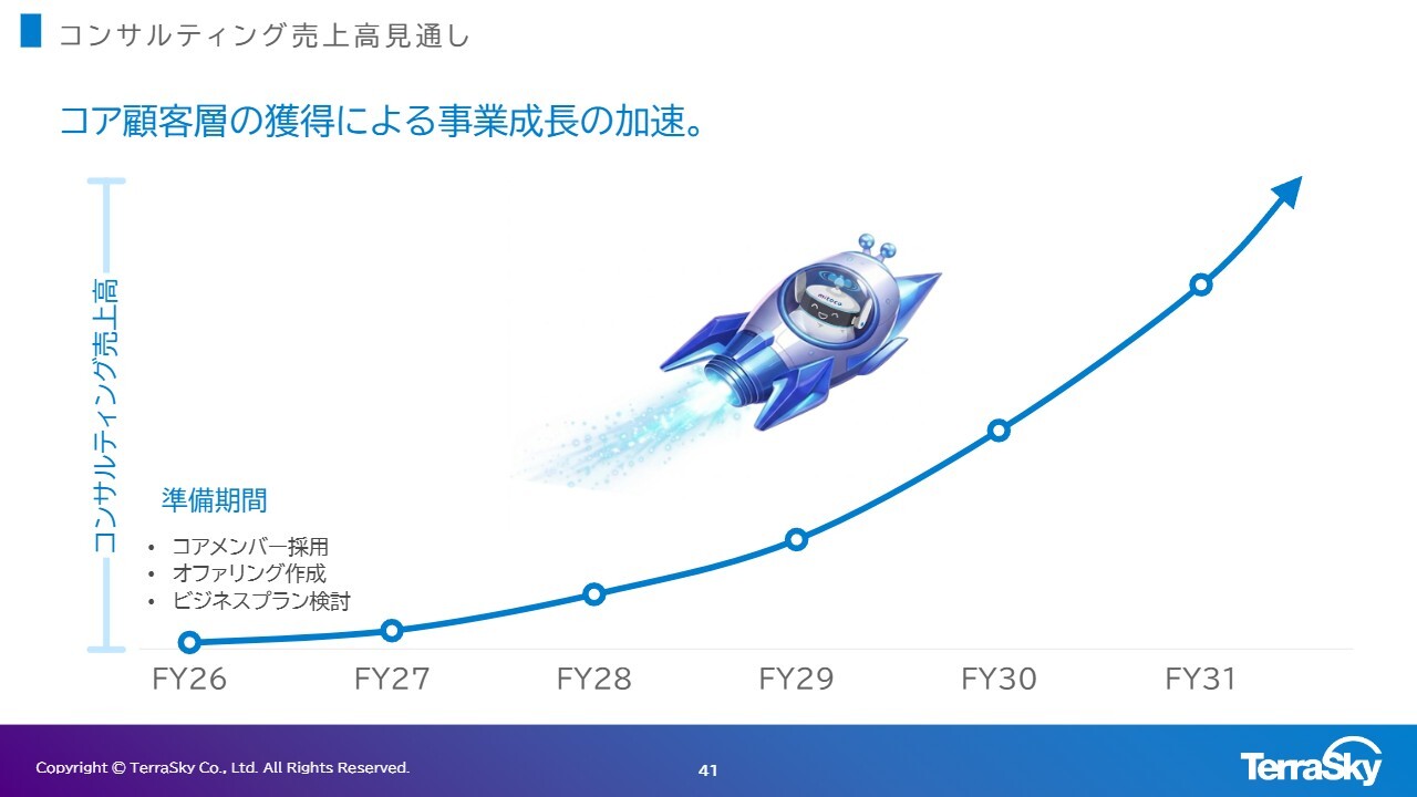 取り組みの状況といたしましては、昨年度からすでに複数のお客さまから依頼を受けて、コンサルティング事業を開始しています。今年度はそれをしっかり根づかせ、組織体制を固め、このようなかたちで成長させていきたいと考えています。