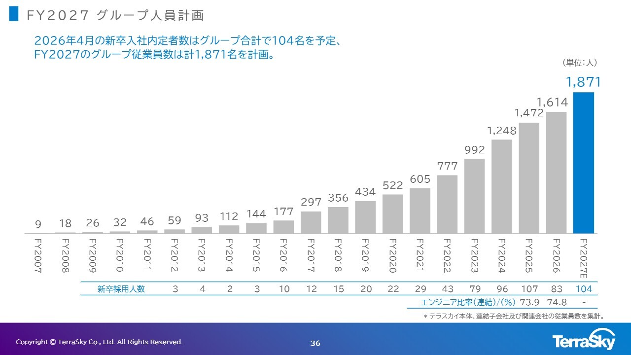 今年度の人員についてですが、最終的には1,871名となり、200名以上の仲間を迎え入れるとともに、しっかり成長していきたいと思っています。