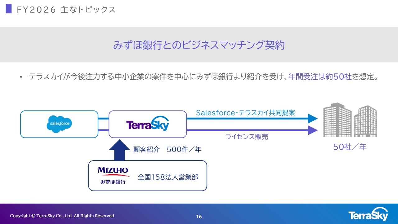 売上に関する2つ目のトピックです。すでに発表済みですが、「Salesforce」の販売を行っていたみずほ銀行(旧みずほリサーチ&テクノロジーズ)さまから、「Salesforce」ライセンスの販売を譲り受けました。