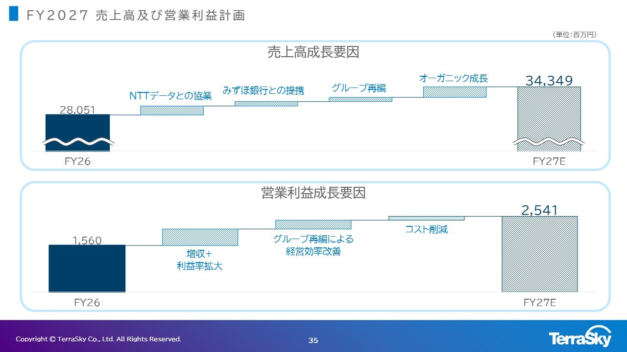 FY26まで積極的な投資を行ったため、利益面ではマイナス幅が大きくなりましたが、今年度、FY27から回復し、プラスに転じる計画を立てています。