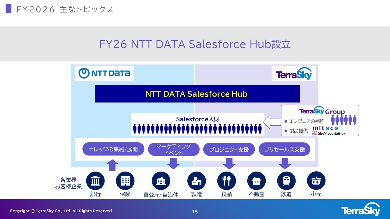 2024年4月、NTTデータさまとの資本業務提携発表後、1年間にわたる議論を経て、昨年の4月にNTTデータさまと「NTT DATA Salesforce Hub」という組織を立ち上げ、「Salesforce」を共同でインプリメンテーションしていく体制を構築しました。