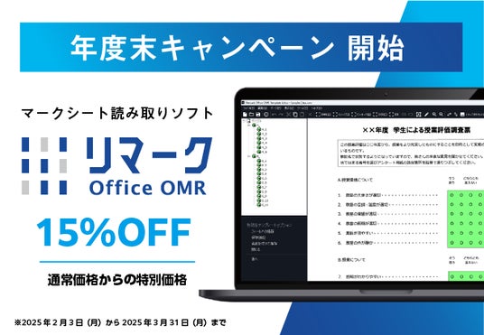 株式会社ハンモック(本社:東京都新宿区、代表取締役社長:若山 大典、証券コード:173A、以下「ハンモック」)は、大学などの教育機関をはじめ、多くの団体・企業に多数の導入実績を誇るマークシート読み取りソフト「リマーク」は、通常価格より15%OFFでご購入できる、年度末キャンペーンを2025年2月3日(月)より開始いたします。