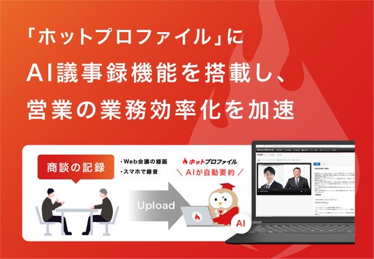 株式会社ハンモック(本社:東京都新宿区、代表取締役社長:若山 大典、証券コード:173A、以下「ハンモック」)は、クラウド型名刺管理・営業支援ツール「ホットプロファイル」 において、AIが録画・音声データを解析して商談内容を自動で要約・整理する「AI議事録」機能を、2025年6月下旬に提供開始することをお知らせいたします。