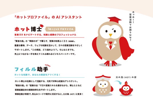 この度、「ホットプロファイル」の新キャラクターとして、営業活動の効率化をサポートするAIアシスタント「ホット博士」を発表いたします。