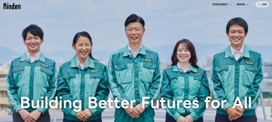 株式会社きんでん(本店:大阪市北区 社長:上坂隆勇)は、今年3月に制定した英語版コーポレートスローガン「Building Better Futures for All(日本語版:未来を良くする工事中。)」およびステートメントを海外のあらゆるステークホルダーの皆さまにも分かりやすく紹介するべく、当社の英文ホームページ内に新しくブランドページをリリースしました。