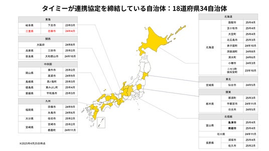 当社はこれまで17道府県・33自治体と連携協定を締結しており、今回の志摩市との連携は18道府県・34自治体目となります(※2)。なお三重県における自治体連携は、今回が初となります。