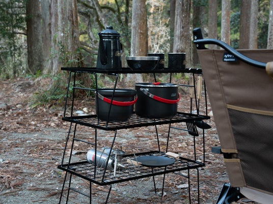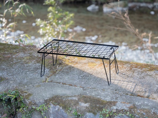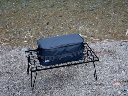 スチール製で、フライパンなど熱のあるものを置いても安心なアウトドアラック。一般的なスチール製ラックに比べて軽量な1.5kgを実現しました。耐久性・安定性・耐荷重にこだわり、分散耐荷重は約30kgと、クーラースタンドとしてもご使用いただけます。また、天板を追加すればローテーブルとして、最大3段まで重ねてラックとしてのご使用も可能です。