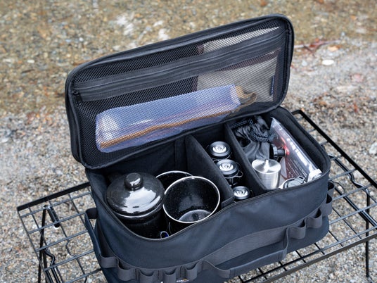 コーデュラ(R)生地を採用した、ギアバッグの14Lサイズ。単独で小物を収納したり、大型ギアバッグ内を整理するバッグinバッグのような使い方も可能です。中材には5mmのポリエチレン素材を採用したことでクッション性を保ち、大切なキャンプギアを保護します。