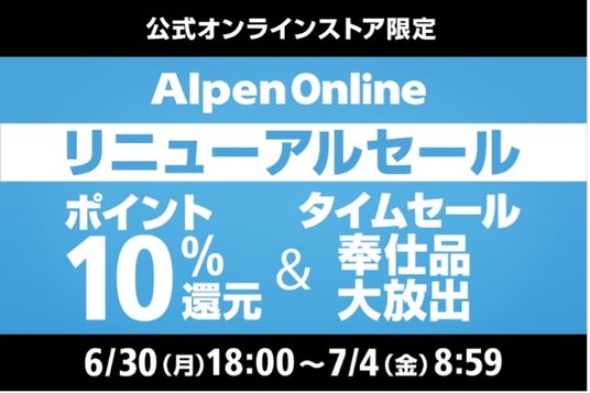 アルペンがオンライン上での旗艦店として「Alpen Online」をオープン オープンを記念したリニューアルセールを6月30日(月)より開始