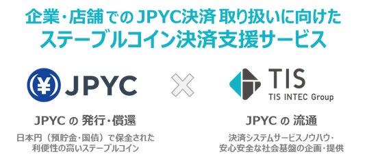 TISインテックグループのTIS株式会社(本社:東京都新宿区、代表取締役社長:岡本 安史、以下:TIS)は、JPYC株式会社(本社:東京都千代田区、代表取締役:岡部 典孝、以下:JPYC)と、電子決済手段(以下:ステーブルコイン)の普及に向けて、共同で事業化の検討、新たなビジネスの創出、顧客開拓や事業推進を行うための基本合意書を2025年10月31日に締結したことを発表します。