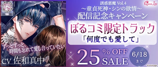 株式会社ボルテージ(本社:東京都渋谷区 代表取締役:津谷 祐司)は、シチュエーションボイスドラマレーベル「Queen Lily」の人気シリーズ「誘惑悪魔」より、「誘惑悪魔 Vol.4~童貞死神・シンの欲情~」(CV.佐和真中)を電子コミックストア「ぼるコミ」ほかにて6月5日(木)より配信を開始したことをお知らせいたします。
