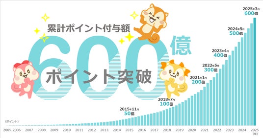 また「モッピー」の累計ポイント付与額は、2022年5月に300億ポイントを突破して以降、毎年100億ポイントずつ増加してきましたが、今回の600億ポイント到達は、前回の500億ポイント突破から1年を待たずして、最速での達成となります。