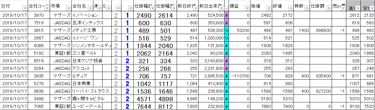 10/17 水曜日 今日のシステムトレードの仕掛候補一覧です。 今日の日経の寄り付きは20円安でBレンジの仕掛けとなりました。 仕掛表の各レンジは前日終値... ...続きを読む