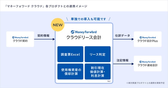 なお本プロダクトは、固定資産管理システムや会計システムとは独立して機能することが可能なため、他社も含めた現在利用中の会計システム、固定資産管理システムを変更することなく、新リース会計基準への対応に絞ってシステム化を進めることが可能です。また、当社が提供する『マネーフォワード クラウド』の契約、会計、固定資産管理、債務管理領域の各プロダクト等との連携も進めてまいります。