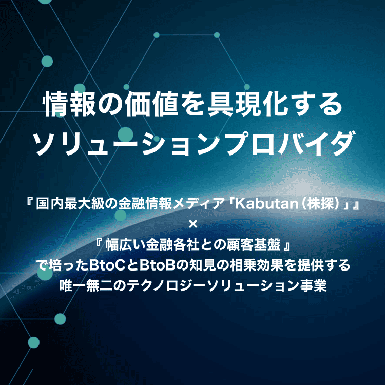 MINKABU/株探/livedoorニュースなど、国内最大級の金融・ニュース・エンタメメディア群を展開。ユーザー数は合計で月間1億人規模にのぼり、幅広い生活者・投資家層に情報を届けています。