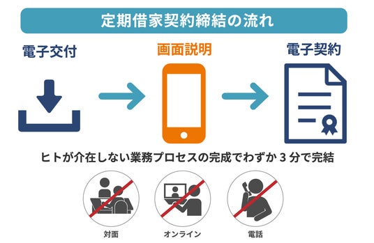 ヒトが介在しない業務プロセスが完成したことで、定期借家契約を最短3分で締結することが可能になります。