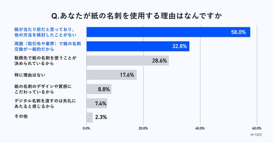 ・デジタル名刺ではなく紙を使用する理由は、「紙が当たり前だと思っており、他の方法を検討したことがない」