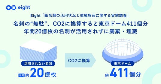 活用されていない名刺の印刷に伴い発生するCO2排出量は年間1.7万トンにのぼり、東京ドームおよそ411個分の森林が1年間に吸収する量に相当(※1)することが判明しました。