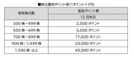 【繰越条件】株主優待ポイントは翌12月末日において株主名簿に同一株主番号で連続2回以上記載さ