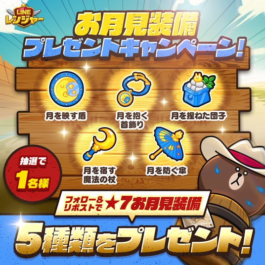 「LINE レンジャー」の公式X(旧Twitter)をフォローして対象投稿をリポストすると、「月見装備全種セット」が抽選で当たります。
