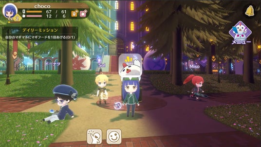 マギマルは、魔法世界に住む不思議な生き物です。マギマルにエサをあげると「マテリアル」と呼ばれるエネルギーの結晶を生み出すことがあります。マギマルをお世話しながらマテリアルを集めて、交換所で素敵なアイテムを入手してください。