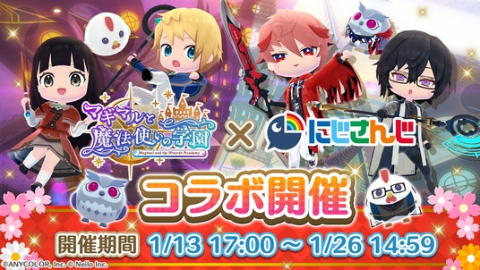 ゲーム開発やサウンド制作などを手がけるネイロ株式会社(本社:東京都新宿区、代表取締役:村澤清彰、 以下ネイロ)は、バーチャルライバーグループ「にじさんじ」所属のVTuber、四季凪アキラさん(@Shikinagi_2434) と、セラフ・ダズルガーデンさん(@SerAph_DazZ)との『マギマルと魔法使いの学園』ゲーム内コラボを1月13日(月・祝)17時より開催することを発表いたします。また今回のコラボを記念し、1月14日(火)および1月21日(火)にコラボYouTubeライブ配信を実施いたします。