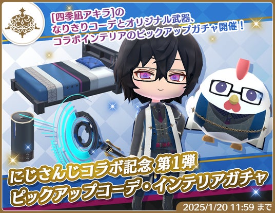 ■にじさんじコラボ【第1弾】:「四季凪アキラ」のなりきりコーデやオリジナル武器、コラボインテリアが手に入るピックアップガチャが登場!
