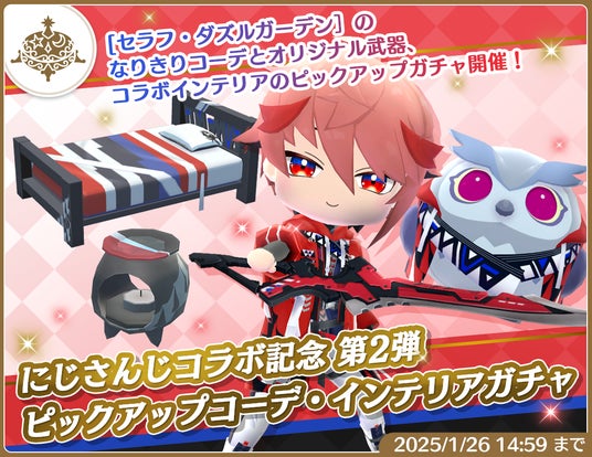 ■にじさんじコラボ【第2弾】:「セラフ・ダズルガーデン」のなりきりコーデやオリジナル武器、コラボインテリアのピックアップガチャが登場!