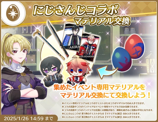 内 容:コラボクエストやコラボマギマルからイベント専用マテリアルを集めて、マテリアル交換所にて期間限定のコラボアイテムと交換しよう!