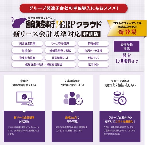 さらに、上場企業や大会社だけでなく、今までシステムを必要としていないグループ関連子会社にも最適な新リース会計基準対応に特化した『固定資産奉行V ERPクラウド 新リース会計基準対応 特別版』を2025年5月12日に発売いたします。