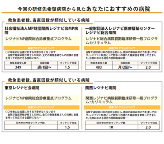 「プレマッチング ~医師臨床研修模擬マッチング~」を利用することで、医学部6年生より前に自身の現状を知り、本番のマッチングに向けてアンマッチにならないよう希望の研修先を決める参考にしてもらうことで、アンマッチを未然に防ぐことを期待しております。将来的にアンマッチの数が減ることにより、医師の地域偏在の解消に貢献することも期待できます。