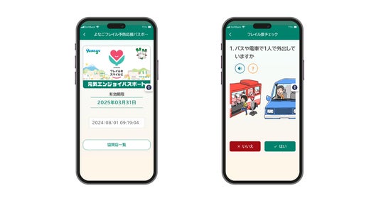 本プロジェクトは、米子市の65歳以上の高齢者約35,000人を対象に、フレイル度チェックの促進を目的としたスマートフォンアプリの開発から始まりました。このアプリは、フレイル度のチェック機能に加え、日々の運動や食事の記録、フレイル予防を支援する機能を提供しています。健康と判定された方には、健康維持のために市内登録事業所で利用できる健康プログラムのチケットが発行されます。一方、プレフレイルまたはフレイルと判定された方には、フレイル予防を学び、実践するための3か月間の教室への参加が案内されます。また、令和6年5月からは、アプリを活用したフレイル度チェックの結果をもとに、スマートフォン上で「元気エンジョイパスポート」が表示され、市内の協賛店舗で特典を受けられる機能もリリースしました。